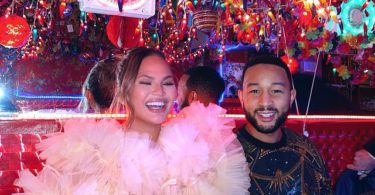 Chrissy Teigen luce espectacular con un vestido rojo